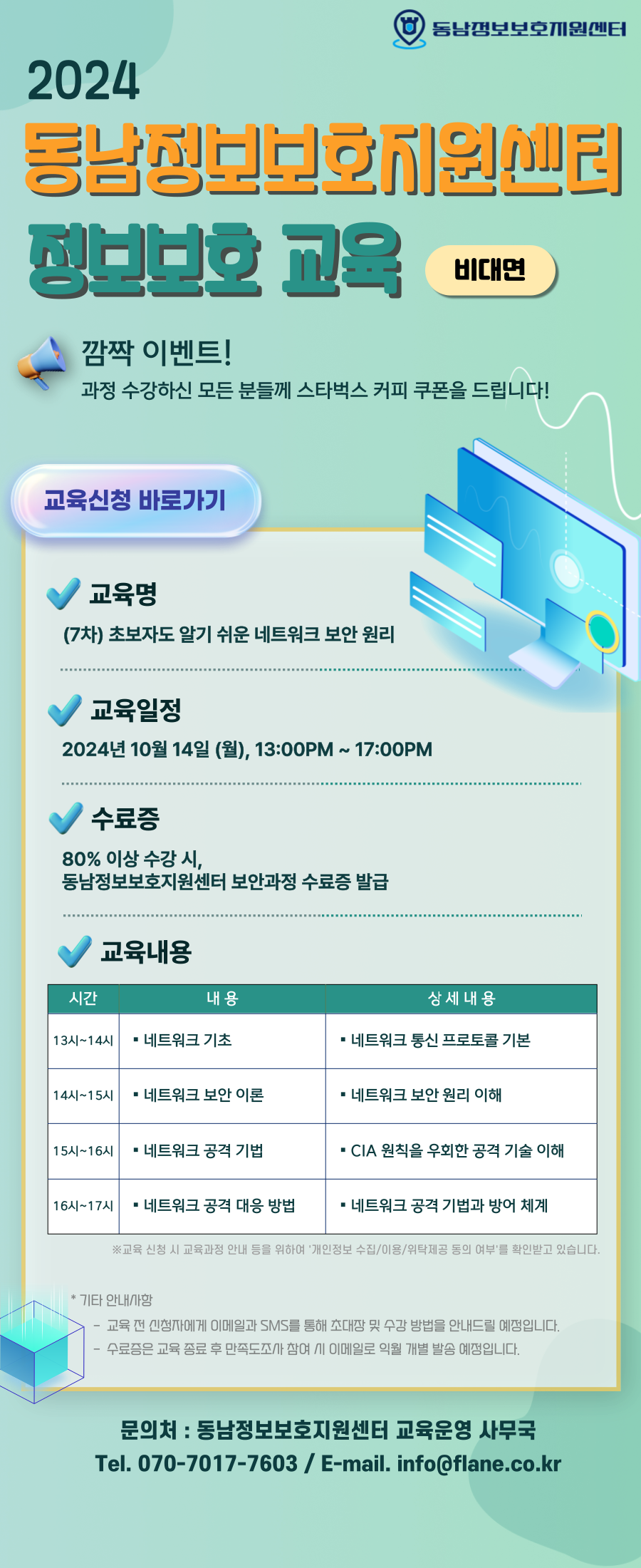 2024년 제7차 동남정보보호지원센터 정보보호 교육(교육생 모집)