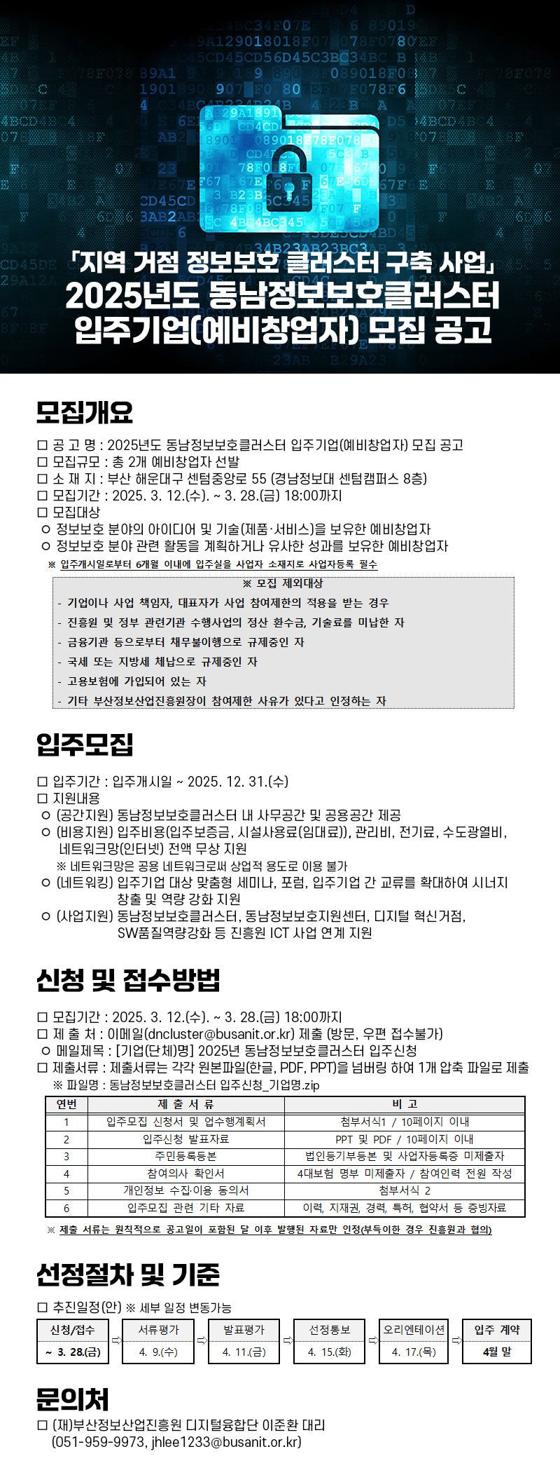 2025년도 동남정보보호클러스터 입주기업(예비창업자) 모집 공고