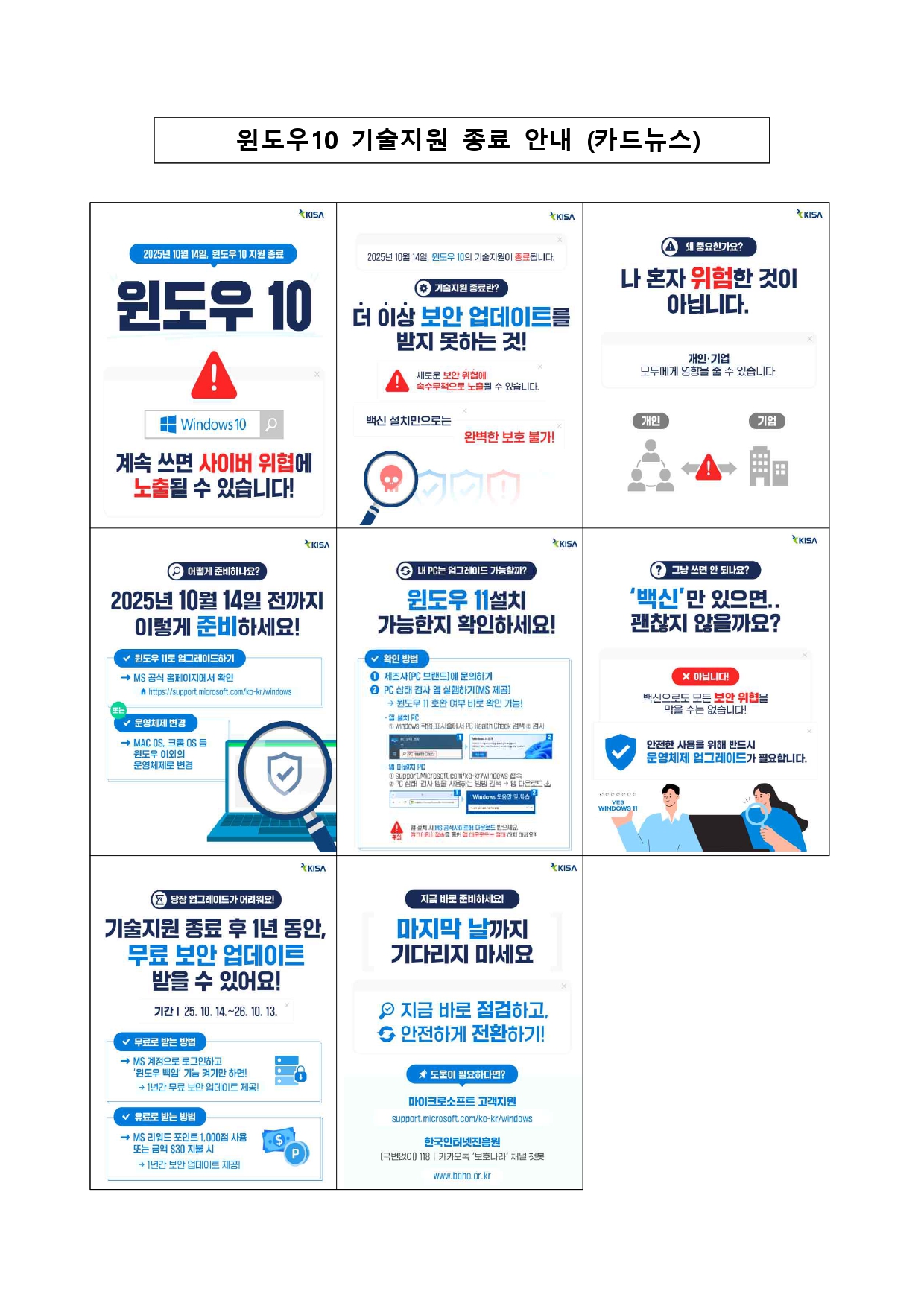 윈도우 10 기술지원 종료 안내