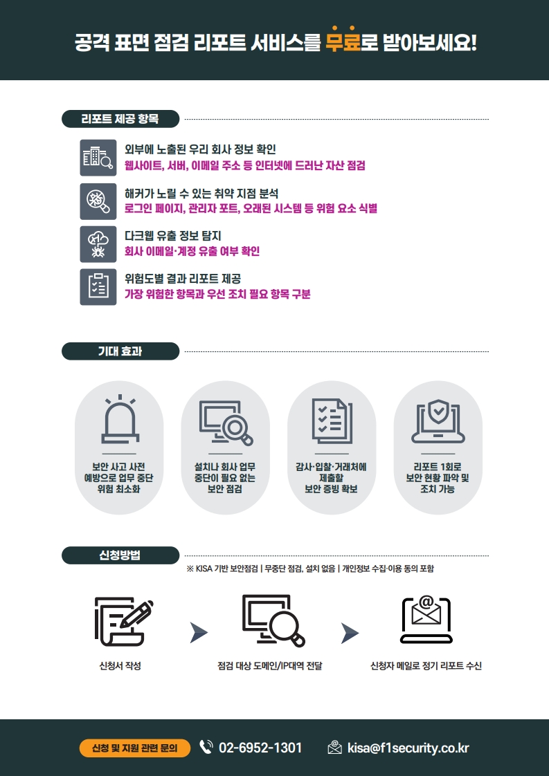 ※ 기업 추가 제출 자료(정보) 없이 취약점을 점검하며 이에 대한 결과는 무상 제공됨